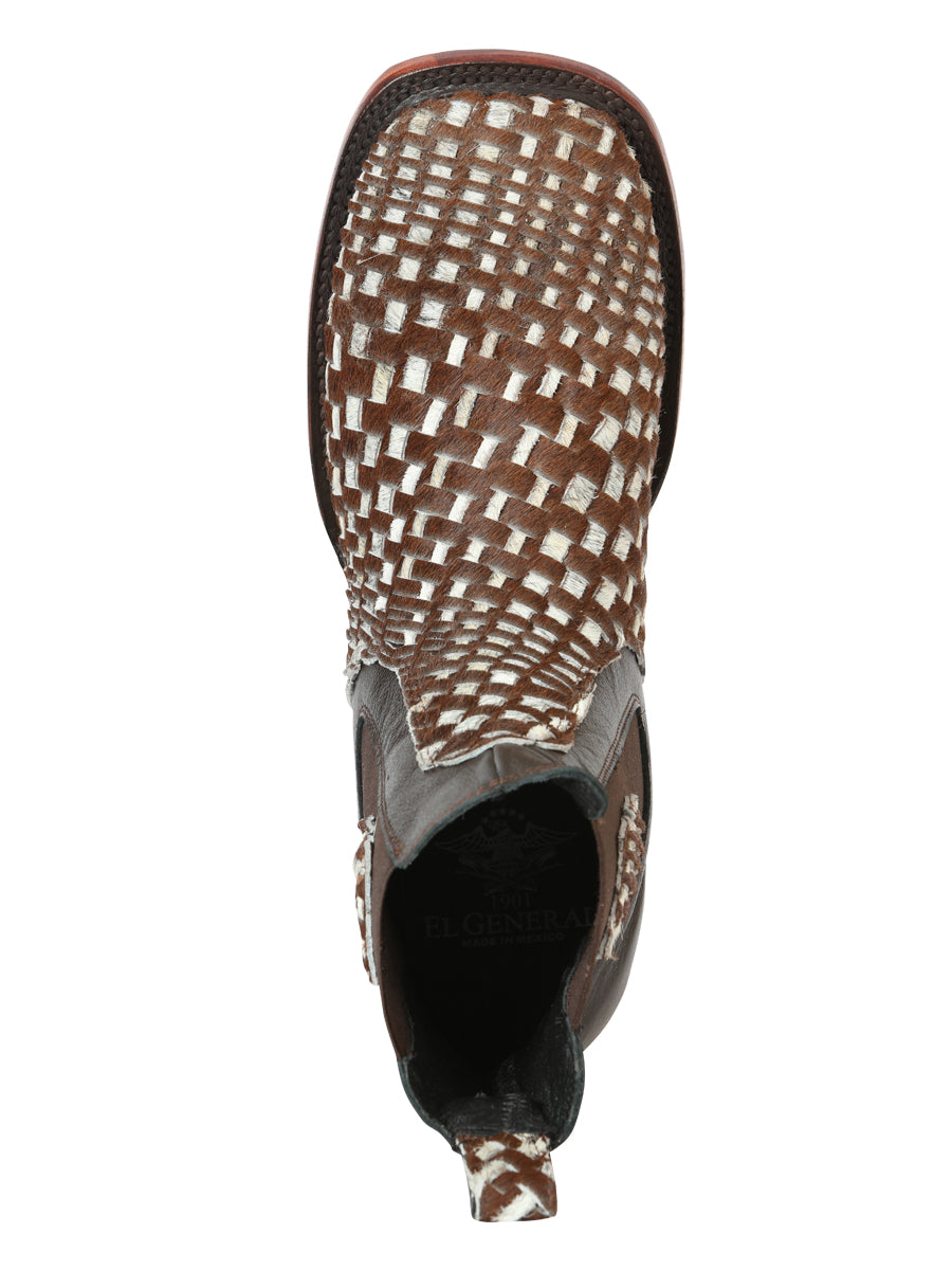 El General Men’s Wide Square Toe Ankle Boots Woven Cow-Hide - Brown/White 45176